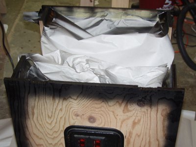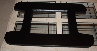 The painted new top piece. Note the beveled edge in the monitor hole.